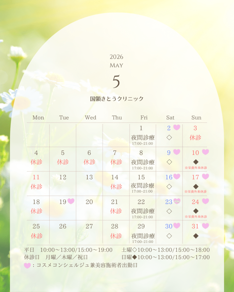※ 学会・研修等のため時間変更・臨時休業となる可能性がございます。ご確認よろしくお願いいたします。